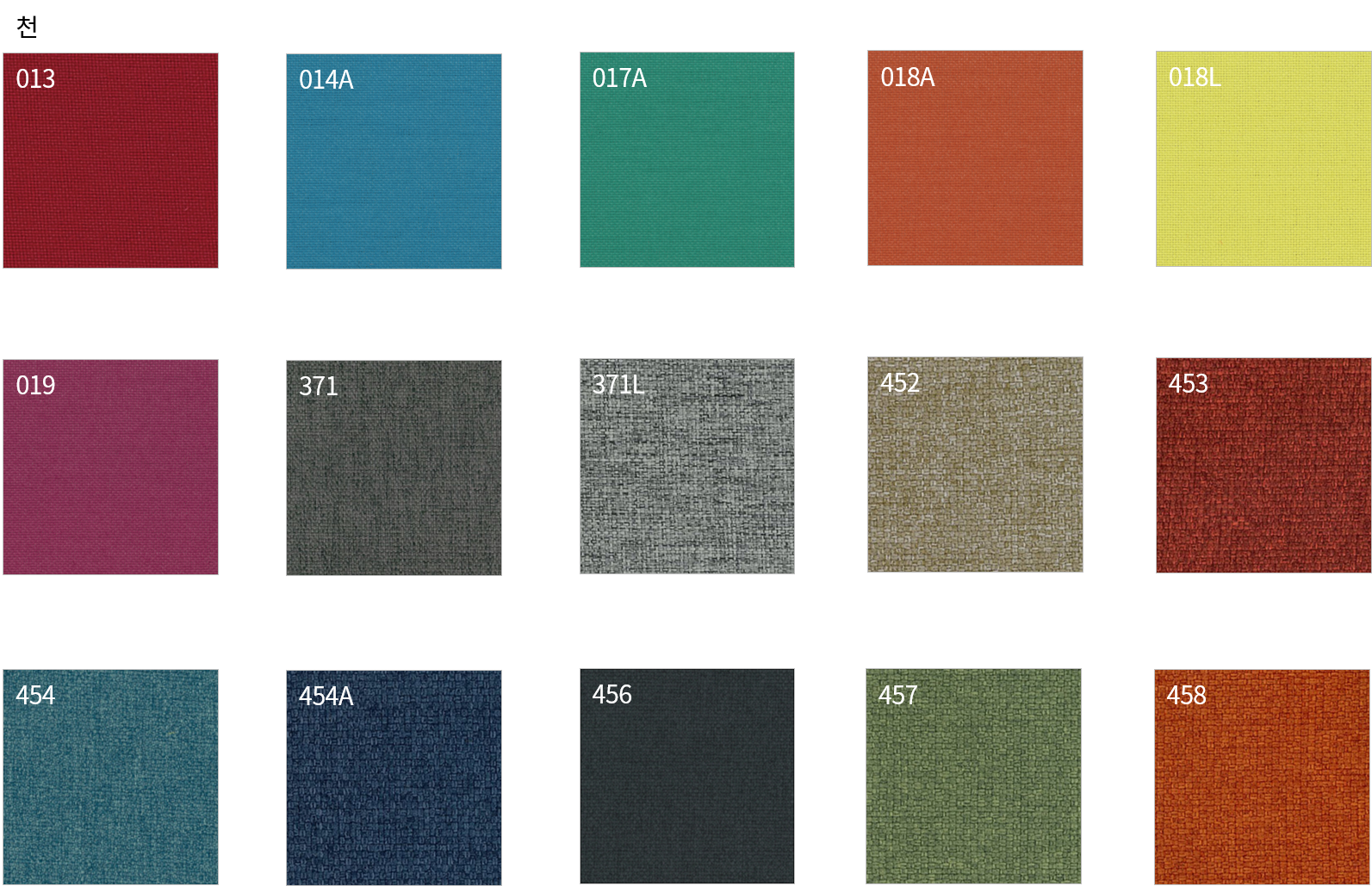 | 색상 | 천 : 013, 014A, 017A, 018A, 018L, 019, 371, 371L, 452, 453, 454, 454A, 456, 457, 458 |